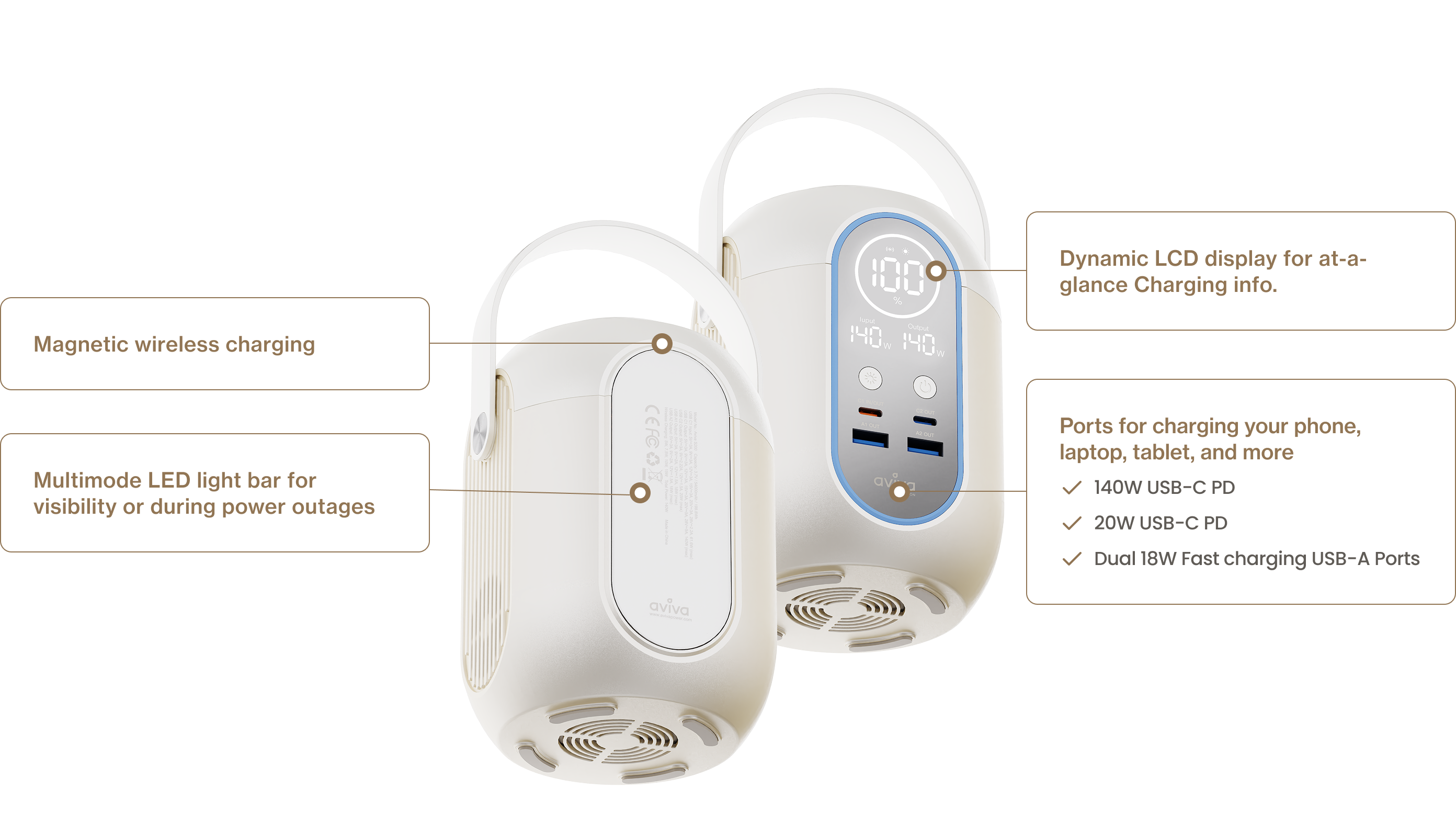 Light, effortlessly portable, and packed with power, the Aviva S200 Home keeps your devices charged at home and everywhere life takes you.